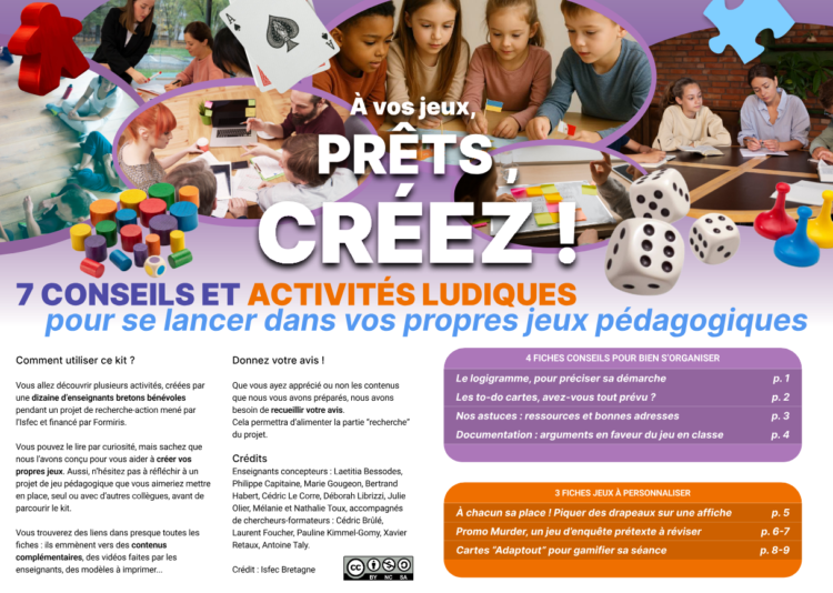 Merci à tous les enseignants ayant participé à ce projet et ayant contribué au kit de création et d’animation des jeux (leurs noms sont mentionnés dans les deux supports).